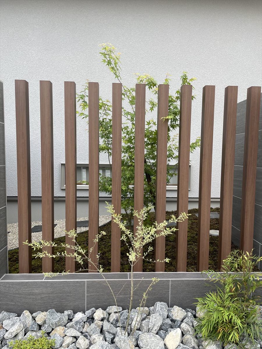 デザインは縦桟のシンプルなタイプで、視線を完全に遮るものではなく、敷地境界を明確にすることと軽い目隠し効果を両立させた仕様です。