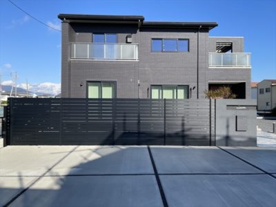 この事例では、敷地の境界部分にブロック基礎の上にアルミフェンスを設置しました。