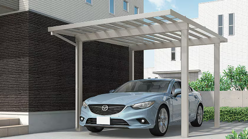 三協アルミのG-1シリーズは、高強度折板カーポートの代表格。