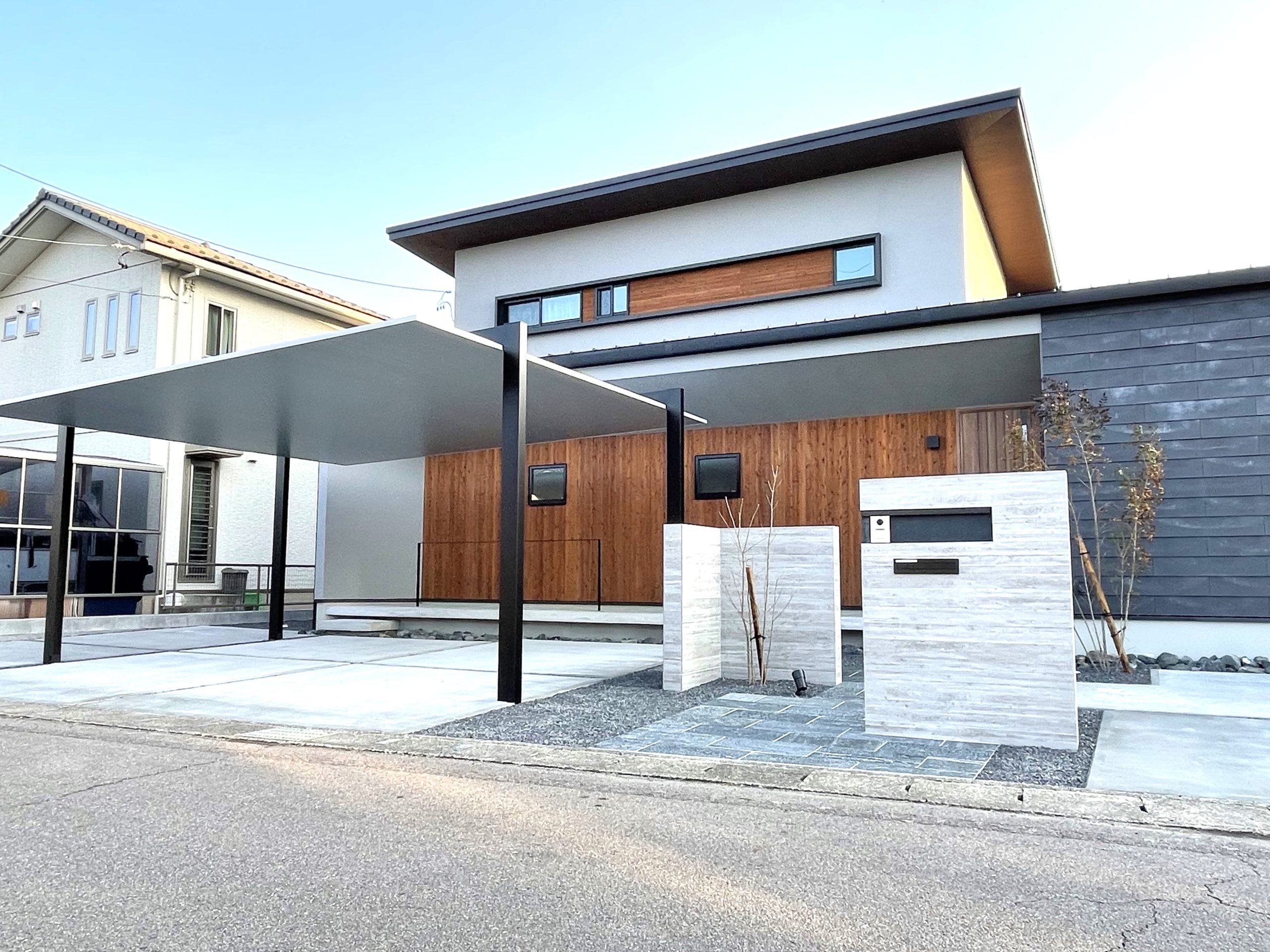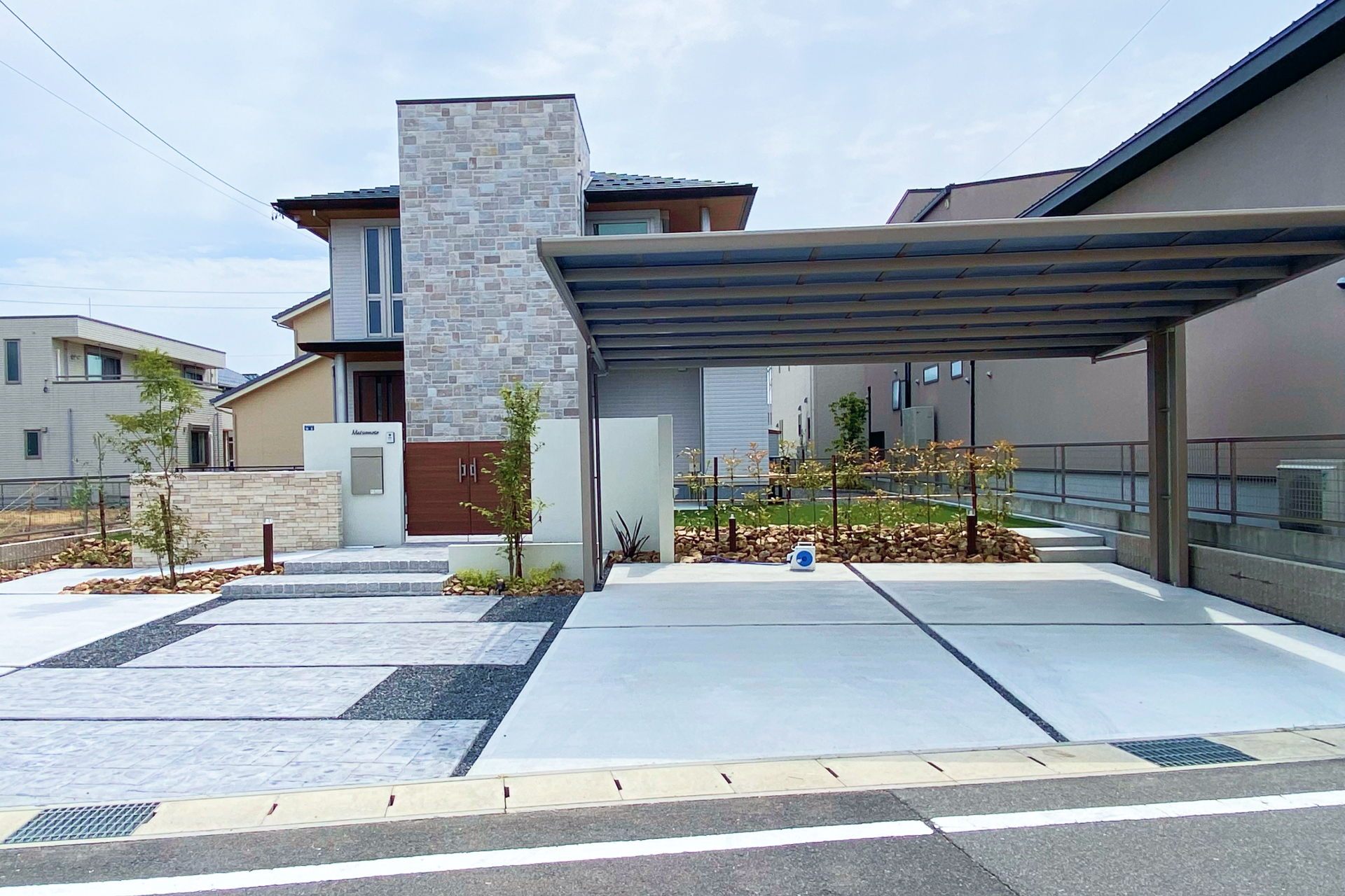 住宅の外観になじむ意匠性に凝った高級カーポート。